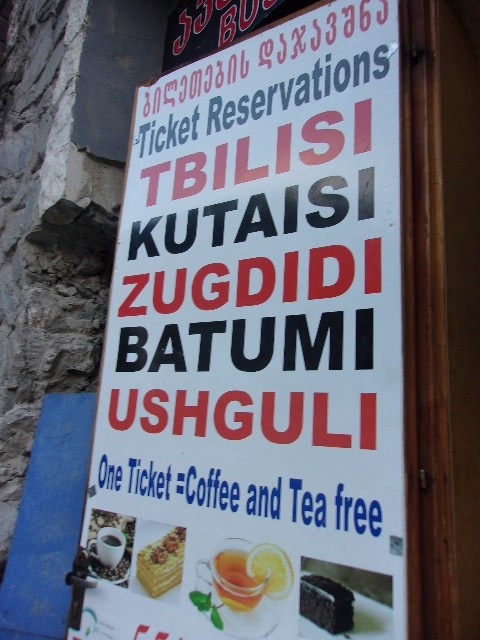 ほかにも、トビリシ行きやバトゥミ行きなどジョージアあちこち、あるいは、ウシュグリ行なども出ています。マルシュルートカは座席数が少ないので予定が決まっていたら、早めにこちらでチケットを購入しておくとよいと思います。