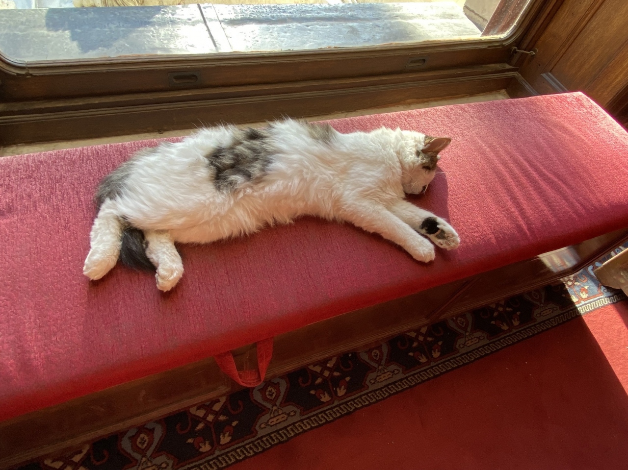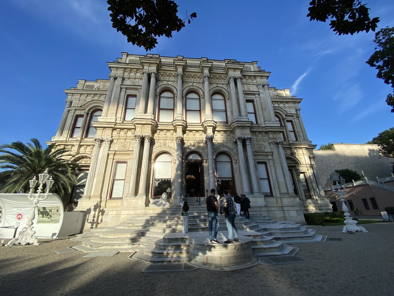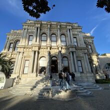 アジアサイトのユスキュダルからバスで行きました。スルタンの離宮で、宮殿内は撮影禁止です。入るときにセキュリティチェックがあります。宮殿内の装飾が豪華で、特に青をベースにした大広間が印象的でした。宮殿の入口では、猫がお昼寝していました。