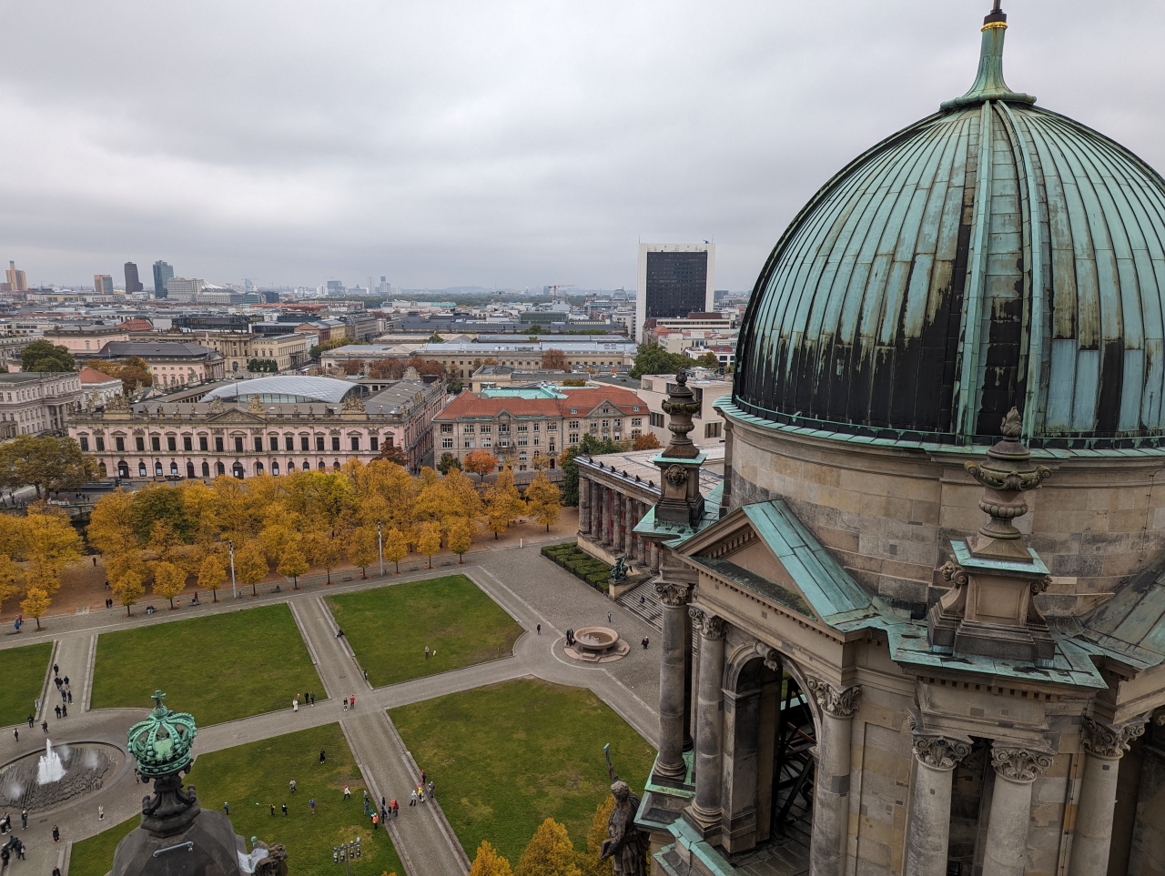 展望スペースではベルリン中心部がきれいに見渡せます。まぁそこまですごい景色ではないですが、街の雰囲気を感じられるし下の芝生はきれいだし、雨でなければおすすめです。
