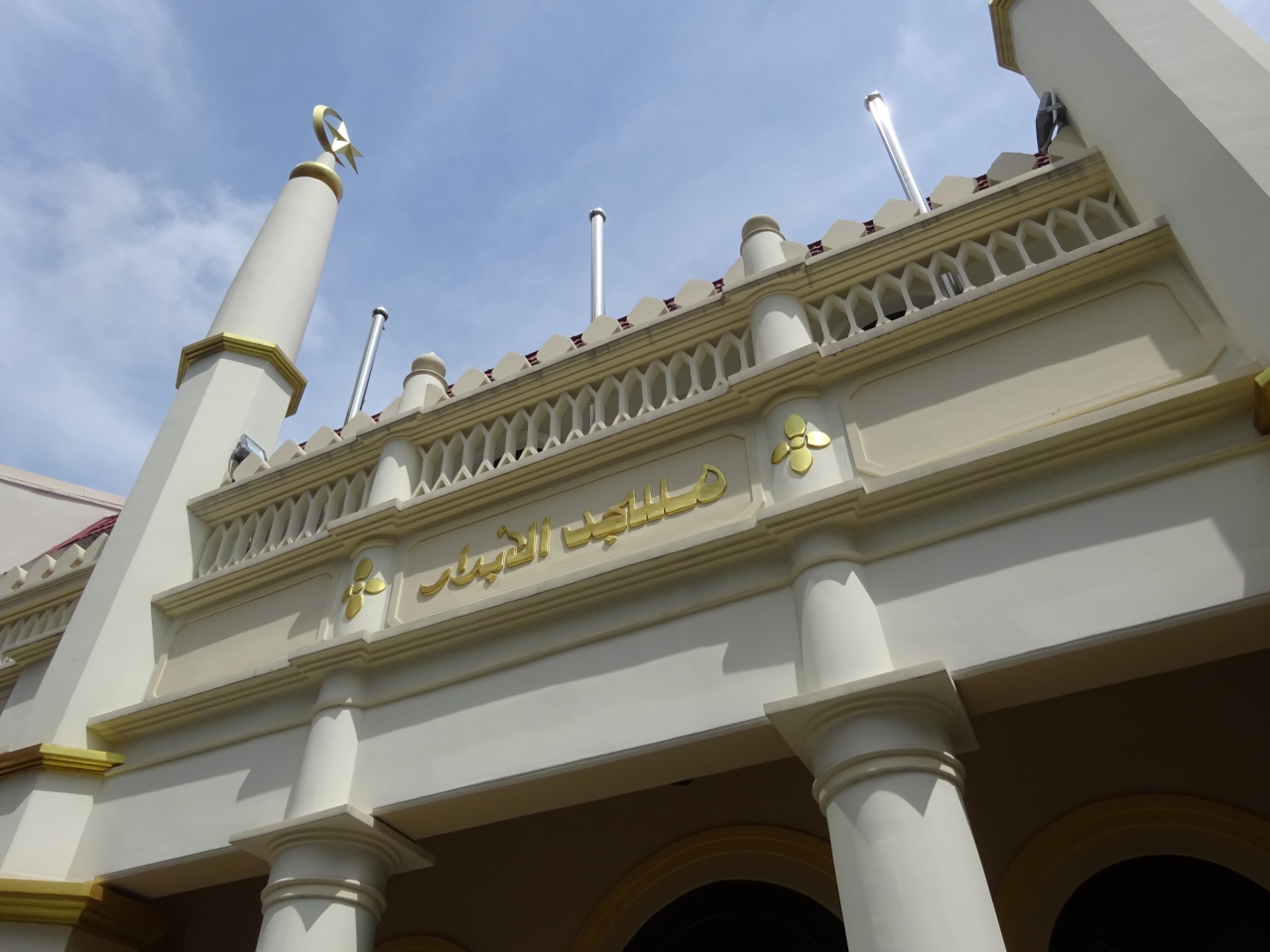 シンガポールのアル アブラー モスクです。Telok Ayer Streetにあります。歴史のある建物なのか、入り口付近に説明書きがあって、日本語でも説明があります。こぢんまりしたかんじのモスクです。装飾が、それらしいです。