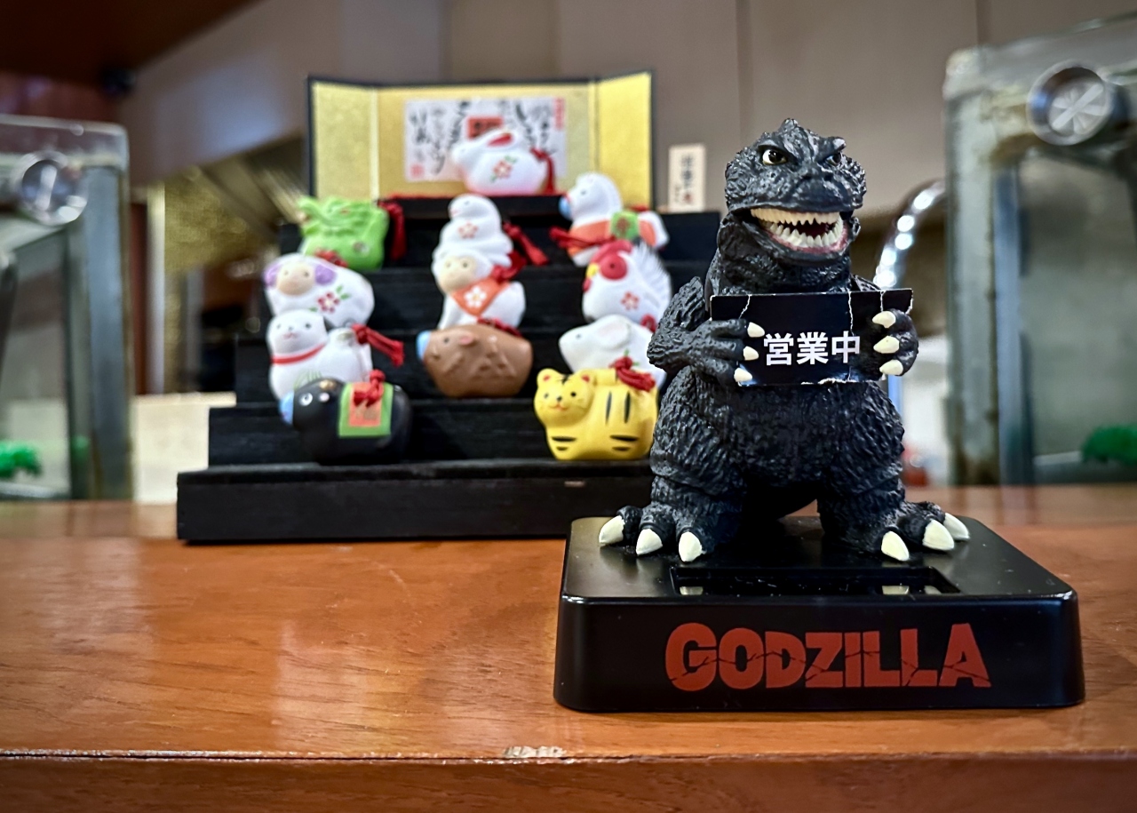 このお店はゴジラが好きらしく(店の前にも大きなゴジラ)…目の前にあるカウンターの上の「ゴジラ」と睨めっこしながら、ごちそー様でした…