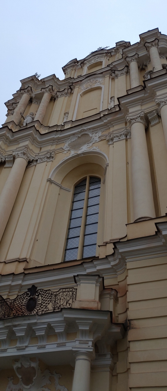 「ヴィリニュス大学」の敷地の中にあります。近くに入場料を払う場所があると思っていたのに、そのようなものは見当たりませんでした。多分、大学内のフレスコ画が修復中で、見学者の受け入れをしていなかったのだと思います。教会は、遠方からの訪問客を中へ受け入れてくださいました。特に感じたのは、リトアニアの人々は、日本人に興味と優しさを示してくださるようでした。素晴らしい教会でした。