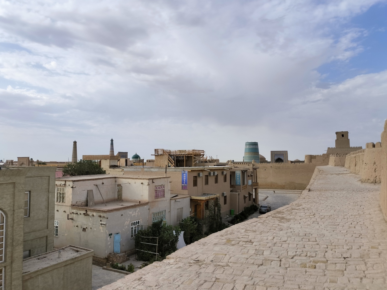 イチャンカラの旧市街を取り囲んでいる城壁です。城壁には登ることができるのですが、真夏に訪れたので涼しい早朝に登りに行きました。登り口にある手前に料金スタンドがあり、そこのおじさんに料金を払うと、城壁への門を開けてくれます。