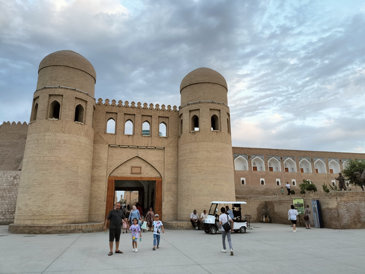 ヒヴァの旧市街は城壁に囲まれた街で、東西南北それぞれにゲートがあります。その中でももっとも賑わっているのが西門でした。入ってすぐに大きな宿泊もできるメドラサがあったり、旧市街の地図があったり、多くの人で賑わっていました。ヒヴァの観光名所の総合チケットもそこで買うことができるようなので、利用すると良いと思います。