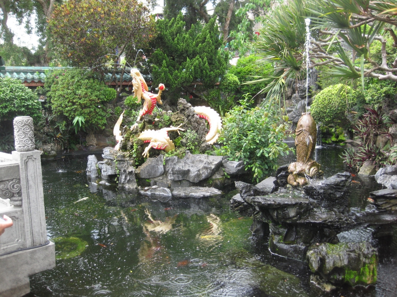 龍山寺の門をくぐって、すぐ右側にある滝です。