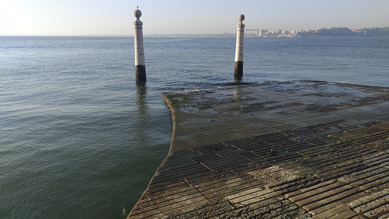 海に直接面している広場という点で、イタリア・ベネチアのサンマルコ広場に似ている。広場から海面に向け緩い傾斜がつけられており、海辺に船の繋ぎ柱か、左右に2本の石柱が立っている。