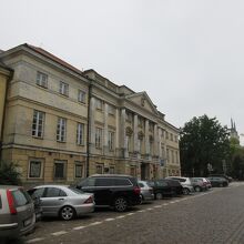 バルバカンを経の見学を終え、ワルシャワ蜂起記念碑に向かう際に左手に立派な宮殿があり足を止めました。ワルシャワの聖霊教会のすぐ西にあり、正面のファサードには4本のギリシア風円柱がバランスをとり、その左右には各三本の柱が支えるという構造になっていました。コリント式の華美な装飾ではなく、全体のバランスが良い建築美を感じました。壁面などの汚れが目立っていましたが、もう少し手入れをすればより多くの方の注目を集めるだろうと思われました。