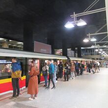 ワルシャワ中央駅に隣接する、南北に走るメトロ1号線の駅がこちらです。東西南北に走る幹線道路の交わる場所から近いため、大勢の利用者でとても混雑していました。この日は1号線にのって一つ北にあるSWIETOKRZYSKA駅で2号線に乗り換えて、【クラクフ郊外通り】方面に向かいました。また、チケットは駅入り口に何台も券売機が並んでいましたので、そこで簡単に購入できました。