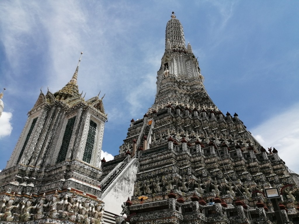ワットアルンと言えば、やっぱり真っ白い大仏塔で有名ですが、大仏塔以外にもいくつかの仏塔がありました。それぞれに意味や役割があるのかもしれませんが詳しくはわからないので、仏塔に施されている装飾やまわりにある石像を鑑賞しました。どれも見ごたえがあり、良かったです。
