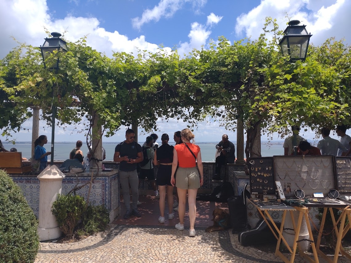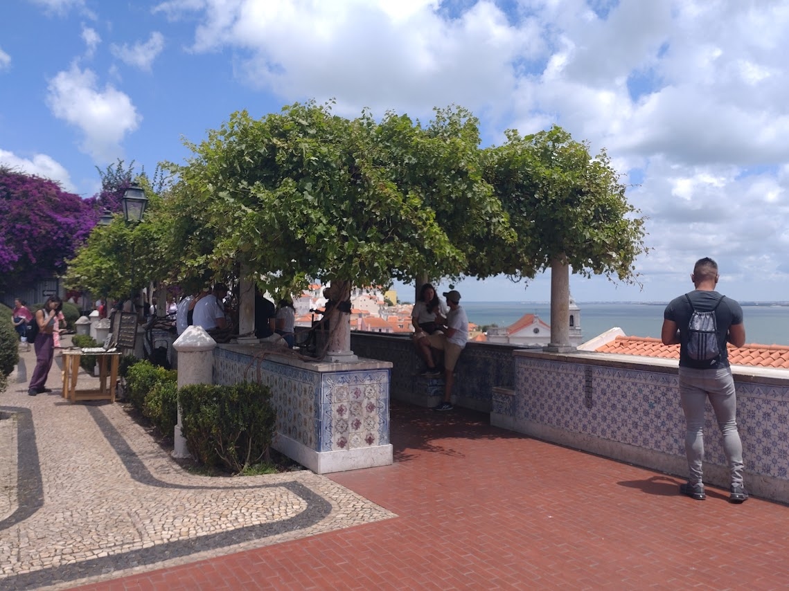 よく整備された庭園の中に、日差しを和らげてくれるぶどう棚が組まれていて、その下からテージョ川の風景を眺めることができます。開放的でこじゃれた雰囲気なので観光客が多く集まっていました。近くへ行ったら立ち寄るべきスポットだと思います。