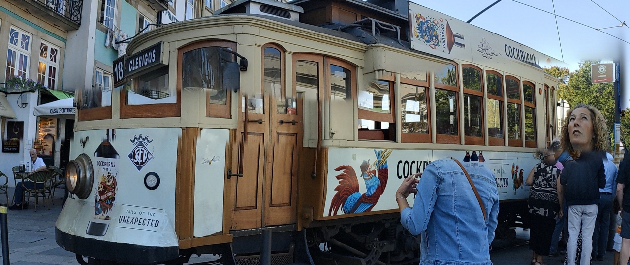 リスボンのトラムとの比較です。車両ではポルトの方が大きく頑丈、座席もポルトは2人掛けクロスシート、リスボンでは横長ロングシート、