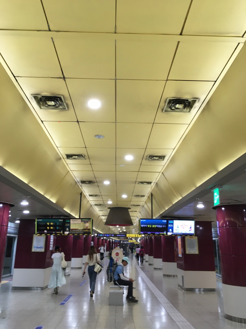 地下鉄2号線を利用しDDPプラザに行く際に降りました。ホームの柱や天井の色がビビットで駅自体もアート感がありDDPプラザに持ち家から直結して行けました。こちらの駅周辺は見どころが多くて治安も良く遅くまで歩いていても安全な雰囲気でした。