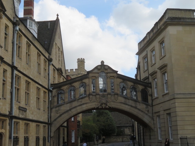 旧市街の中心のボドリアン図書館の近くにあります。こちらの目玉は、何といってもため息橋です。校舎を結ぶ渡り廊下のような橋ですが、この形状が、ベネチアの運河に架かるリアルと橋によく似ています。色合いは、オックスフォードの町並みにマッチした落ち着いたものです。