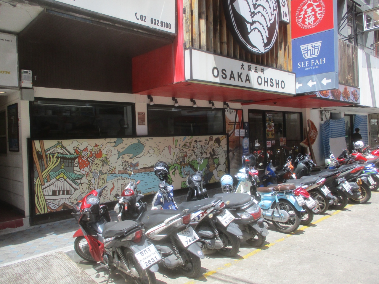 大阪王将のタニヤ店には見慣れた大阪王将の看板が大きく描かれていました。入店するとカウンターに案内してくれました。餃子中心のメニューですが、日本の大阪王将と同じように他のメニューも豊富にありました。店内にはハッピーアワーのプロモーションが貼ってありました。