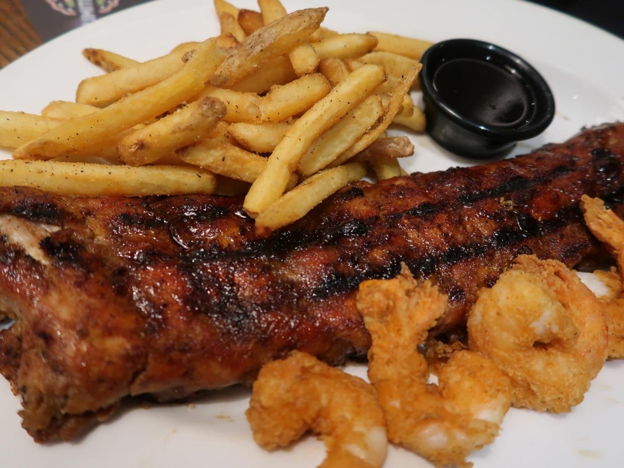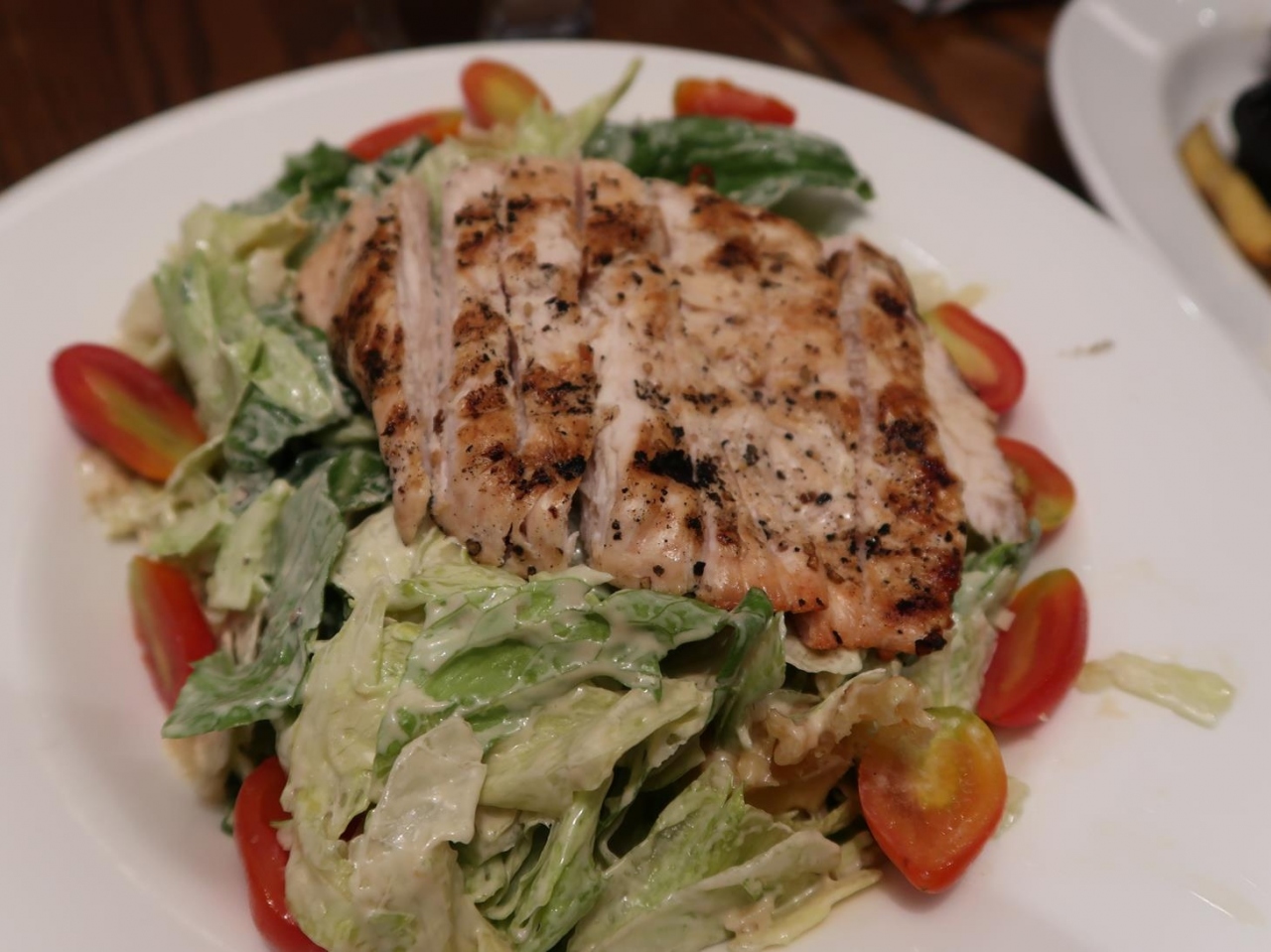 私たちはシーザーサラダ一つとスペアリブ一つを取ってシェア。