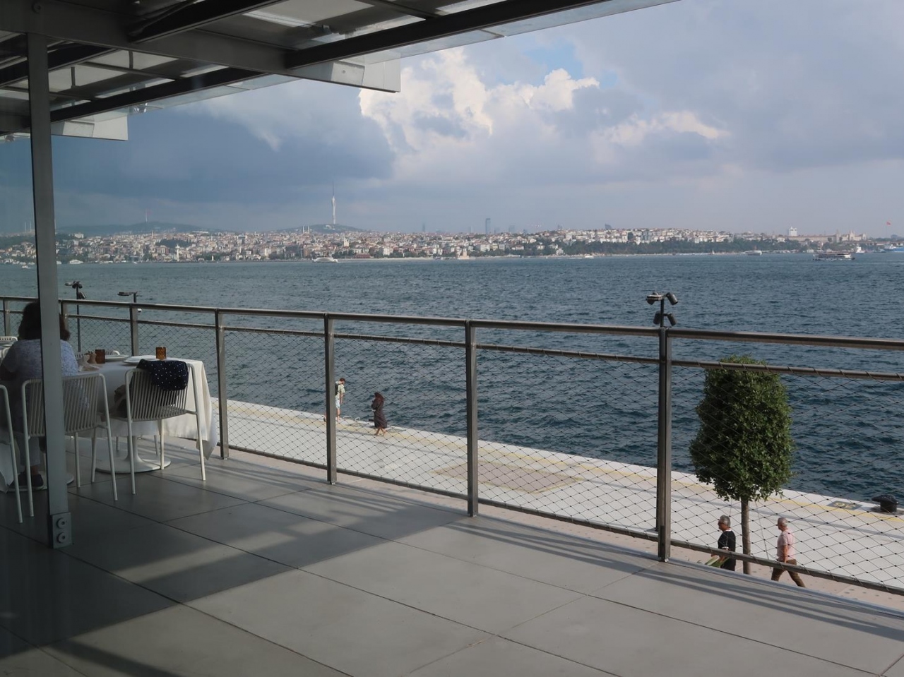 イスタンブール現代美術館があるのは、トラムT1号線のトプハネ駅から徒歩3分程度のボスポラス海峡+金角湾に面した岸壁沿い。