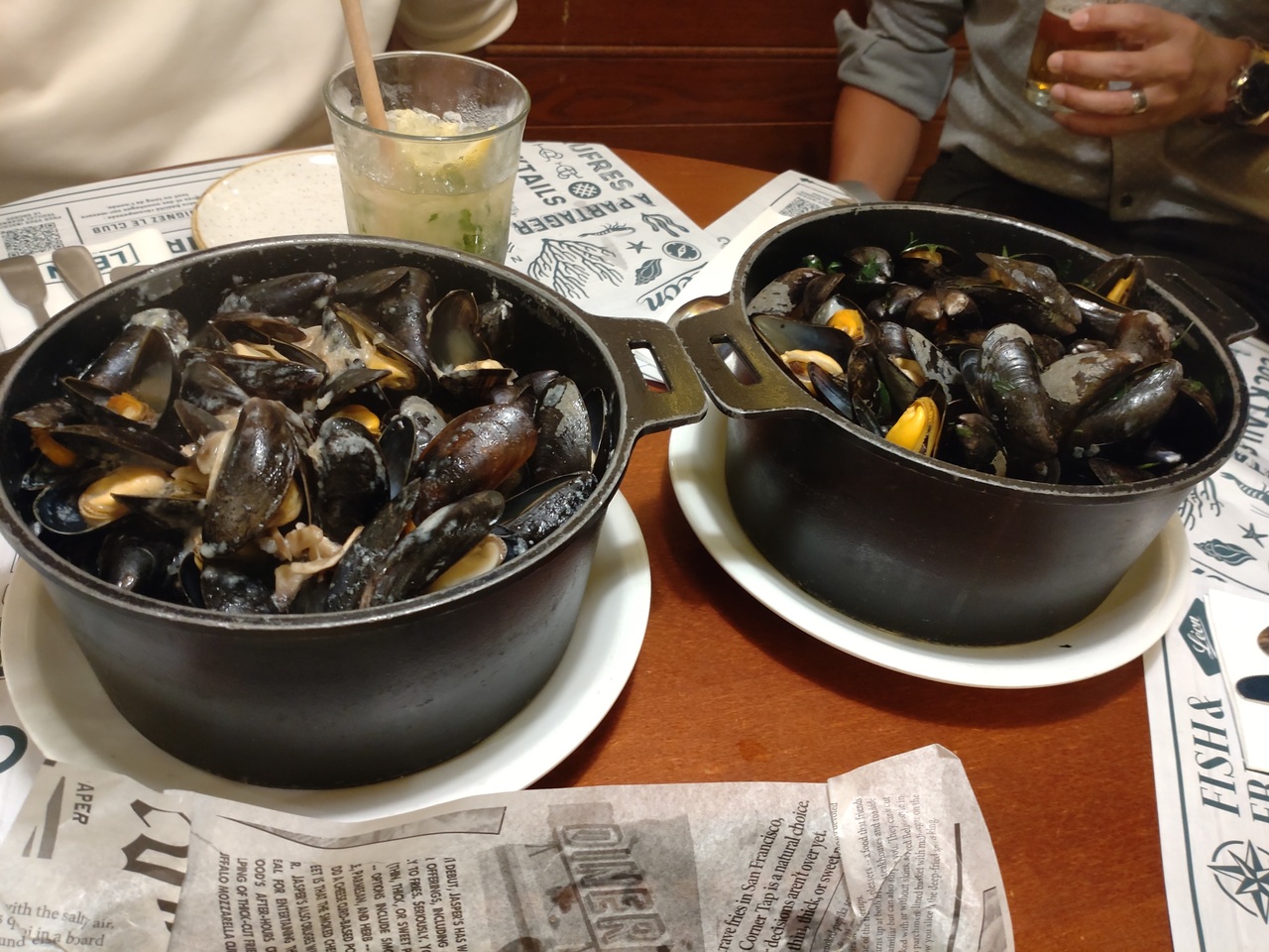 パリメトロ1号線・RER C線ポルト・マイヨ駅前にあるブリュッセル名物のムール貝などが食べられるお店。「レオン ド ブリュッセル」は、1893年創業のベルギー・ブリュッセルの老舗ムール貝専門店「ジェ・レオン」が、シャンゼリゼやオペラをはじめパリ市内に9店舗、フランスで80店舗近くのお店を展開するチェーン店。「パリでムール貝を食べるならココ」と言われるお店で、こちらはパリ国際会議場に近いことから、展示会開催中などは外国人の利用も目立ちます。お店の感じは、カフェというよりは日本のファミレスのような感じで、カジュアルに入れます。このお店で是非食べたいのが「ムール貝の白ワイン蒸し」。大きなバケツに盛られたムール貝は、独特の苦みとコク、プリっとした弾力があり、さらにニンニクの香りで、いくら食べても飽きない感じです。さらに旨味が凝縮されたスープをパンに浸して食べるのも美味。このほかフィッシュアンドチップスや、ムール貝の入ったパエリアも頼みましたが、もちろん美味。なかなかお高いイメージのフランスのレストランですが、価格も比較的リーズナブルで、肩ひじ張らずに食べられる嬉しいお店です。
