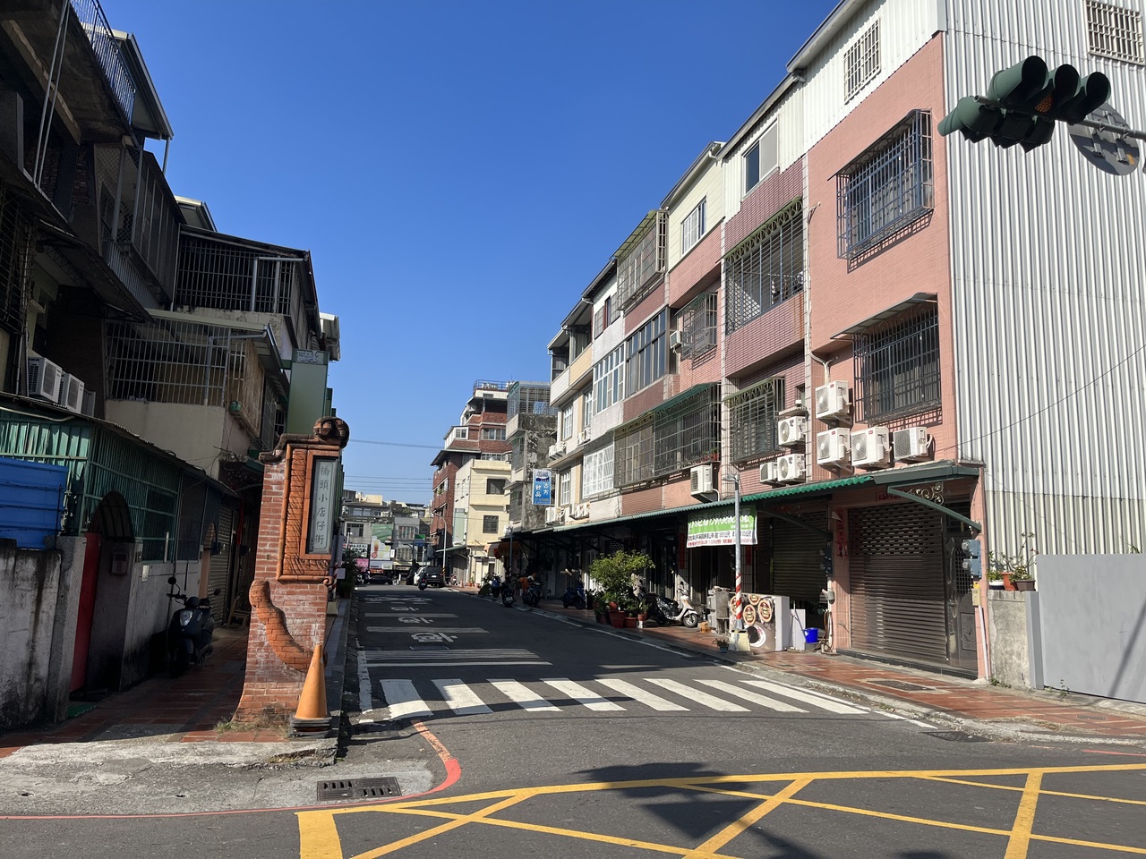 「肉燥飯」などの有名店もあるが、現在は郊外の普通の商店街。街歩きとしては面白いが老街見物は難しい。老街では無いが、橋頭糖廠駅からこちらに向かう際にある橋仔頭社跡の石灯篭・社号標・石盤は日本統治時代のものとして見ておきたい。