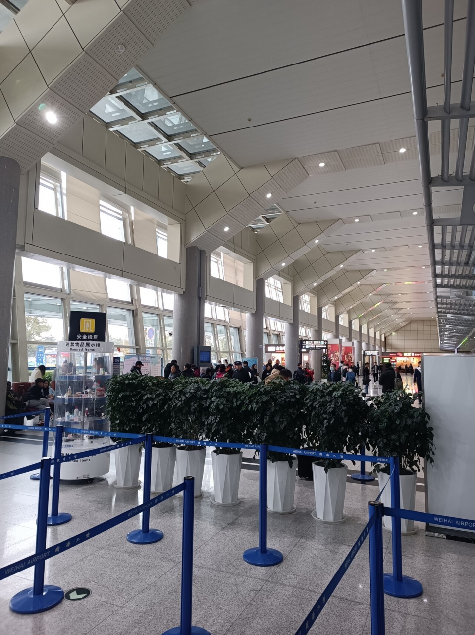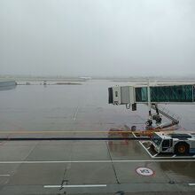 中国の昔ながらの空港なのでコンパクトなのは良いですが、なんというか店ももっさりとしていて雰囲気は暗いです。国際線はちょうど海を超えた向こう側のソウル便だけ飛んでいるようでした。軍民兼用空港なので離着陸時はシェードを下げます。