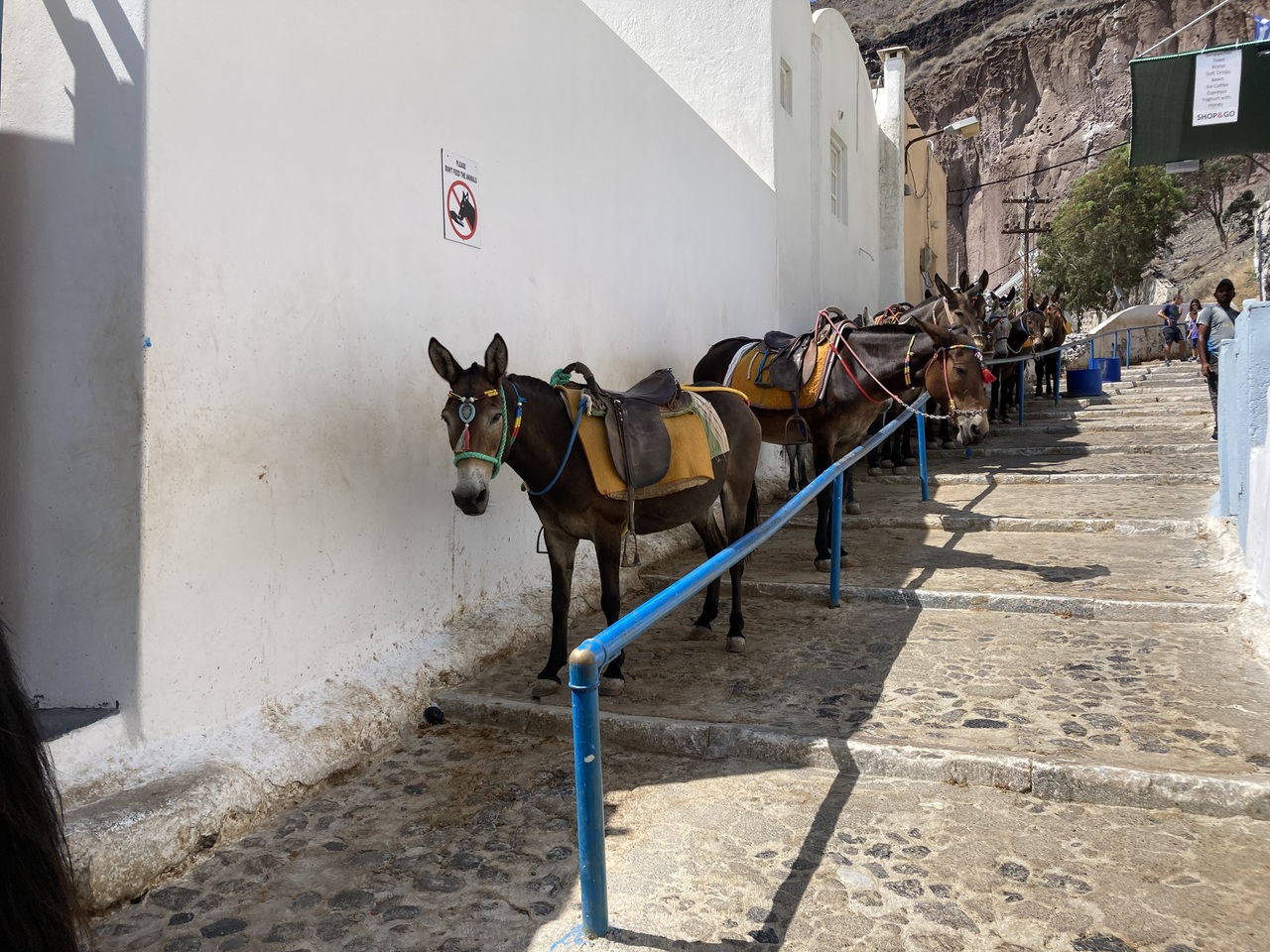 わたしは帰りの登りでここを通りましたが、階段の入口のところに多数のロバが待機していて、そのロバに乗って階段を登ることができます。