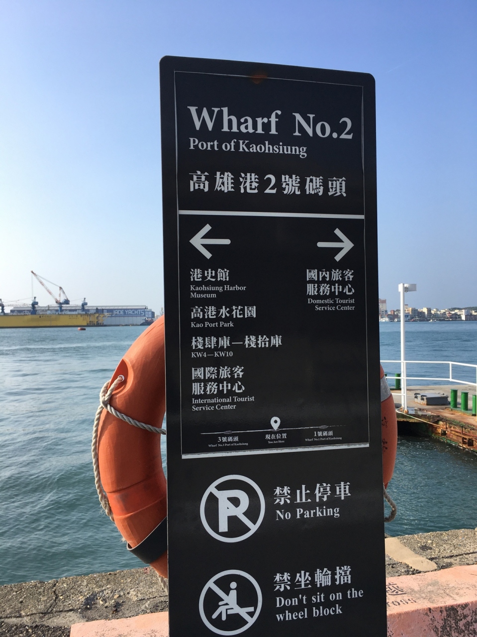 海が目の前に広がります。とくに、手すりやロープがはられているわけではないので、風が強かったら、普通に落ちます。救出用のうきわがあるので、落ちる人もいるのかもしれません。公共トイレが見当たらなかったです。