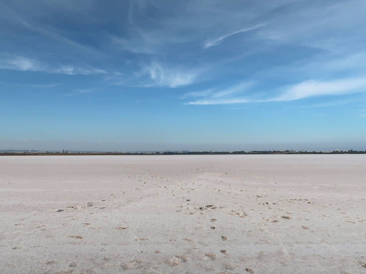ラルナカ空港のすぐそばにある塩湖。夏には干上がって薄ピンク色の塩で覆われます。