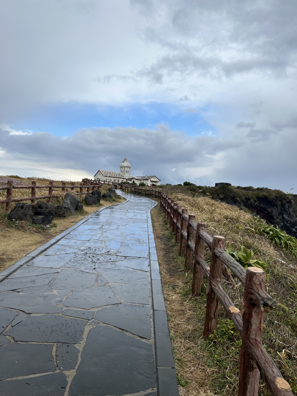 海にそびえたつ奇石が多くお散歩の遊歩道が整備されていてオールインハウスがありました。私が行ったときは雨が降っていて強風凄くレインコートが必須でした。強風は一年中吹き付けるらしく高い木が育たないそうです。灯台までの道からは海岸にそびえる奇石がたくさん見学できました。