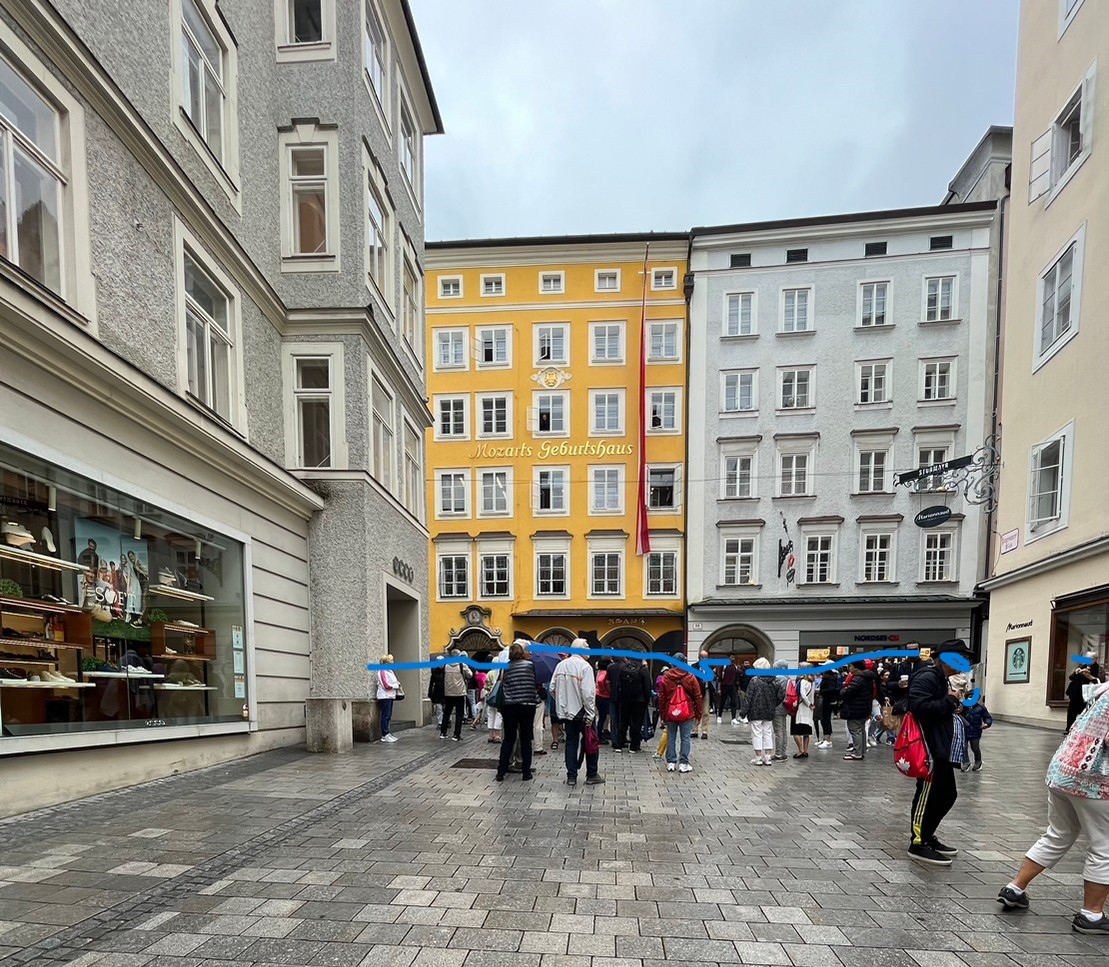 ゲトライデ通りはザルツブルクの旧市街にあるメインストリートです。ザルツブルクの観光名所のひとつであるモーツァルトの生家の前の通りなので、ザルツブルクを訪れた人のほとんどが通る通りだと思います。たくさんのお店が立ち並び、各お店から出ている看板が可愛いかったです。