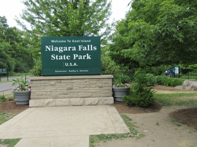 ナイアガラフォールス州立公園に流れる川の中州の島です。アメリカ滝やブライダルベール滝が落ちていく様子が見られました。カナダ滝も良く見える場所もあります。カナダ側から見たナイアガラフォールスより、ゴート島で散策しながら見た滝の雰囲気が良かったです。