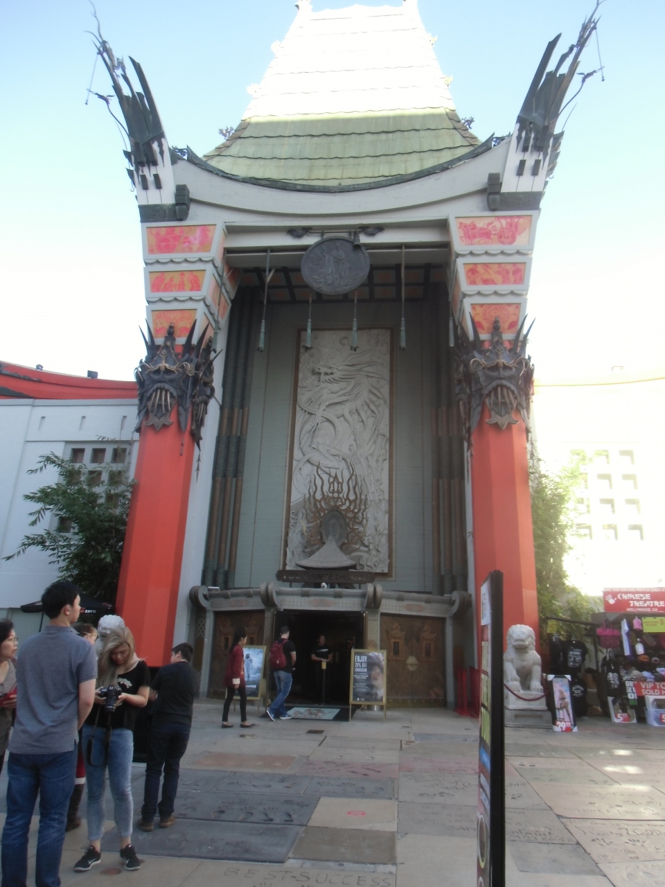 ハリウッドに在る中国式の建物で映画館です。前の道路はアクター、アクトレスはじめハリウッドの映画に貢献した脚本家等などの手形で有名なウオークで、いつも賑やかなエリアです。建物の中にはショップがあり、買い物客が品定めをしていました。