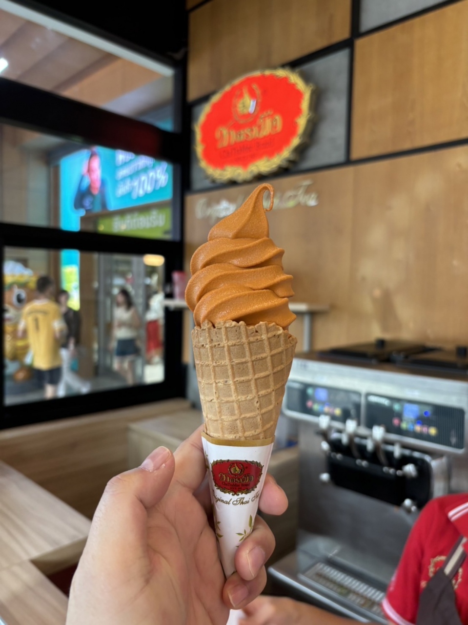 セントラルワールド向かい、BIG-Cスーパーマーケットの建物にオープンした老舗タイティーの新店舗です。タイティーのソフトクリームが好きなのですが、提供する店が減って来ているのように思います。このエリアにも支店がいくつかありますが、探しまわってやっとこの店舗でソフトクリームを食べることが出来ました。ワッフルコーンで45バーツ、食べ歩きにピッタリです。
