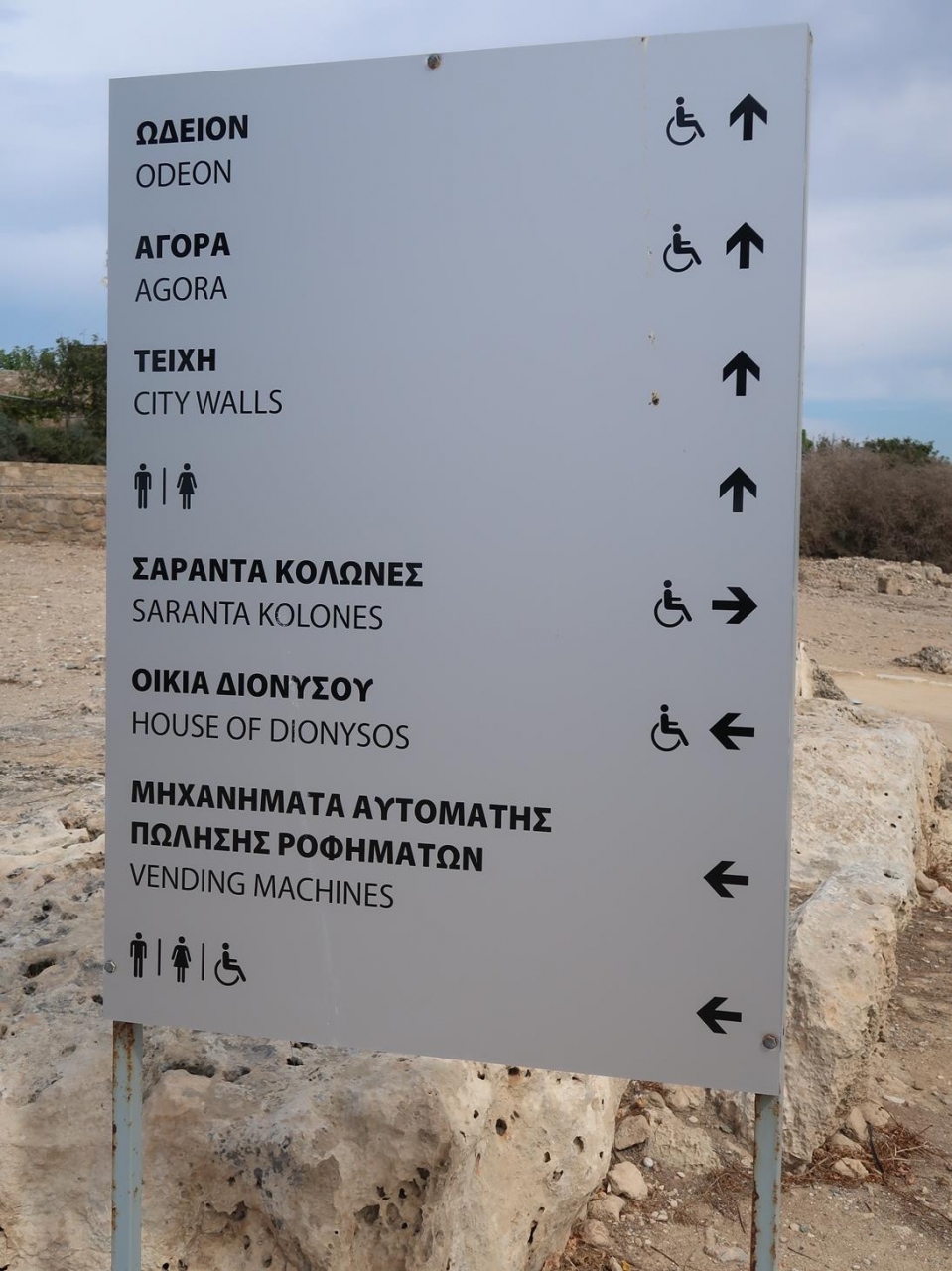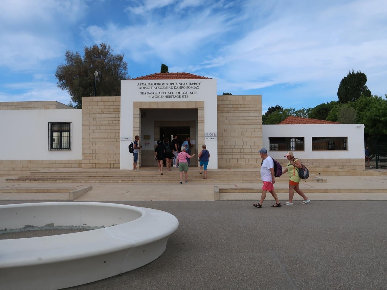パフォス考古学公園の入口は、パフォス港のボートツアー発着所やシーフード料理店が並ぶ岸壁からすぐそこで便利。