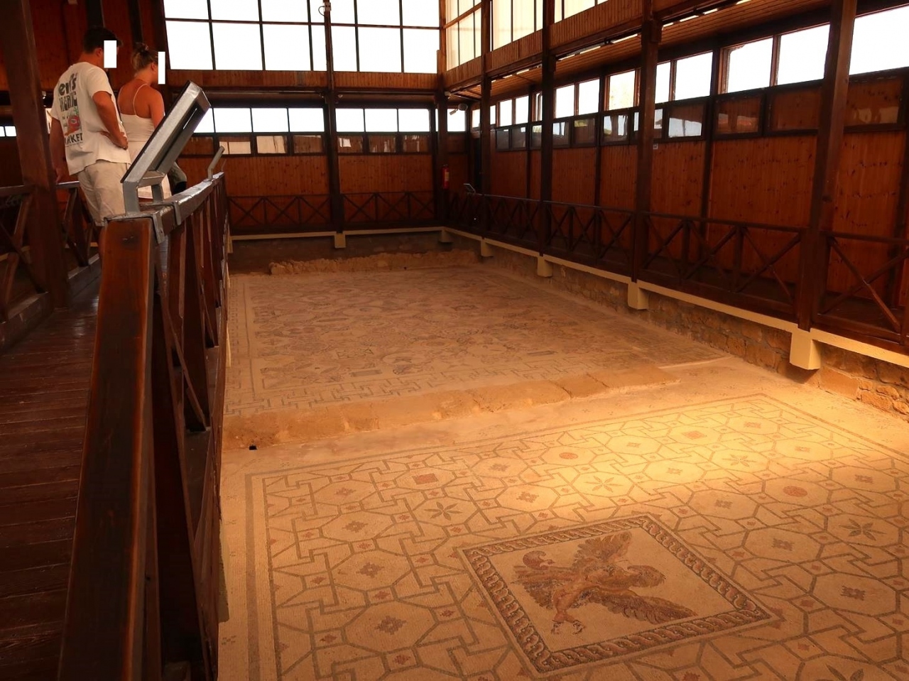 かつての都は遺構化していても、数軒の邸宅跡のモザイク画が美しい