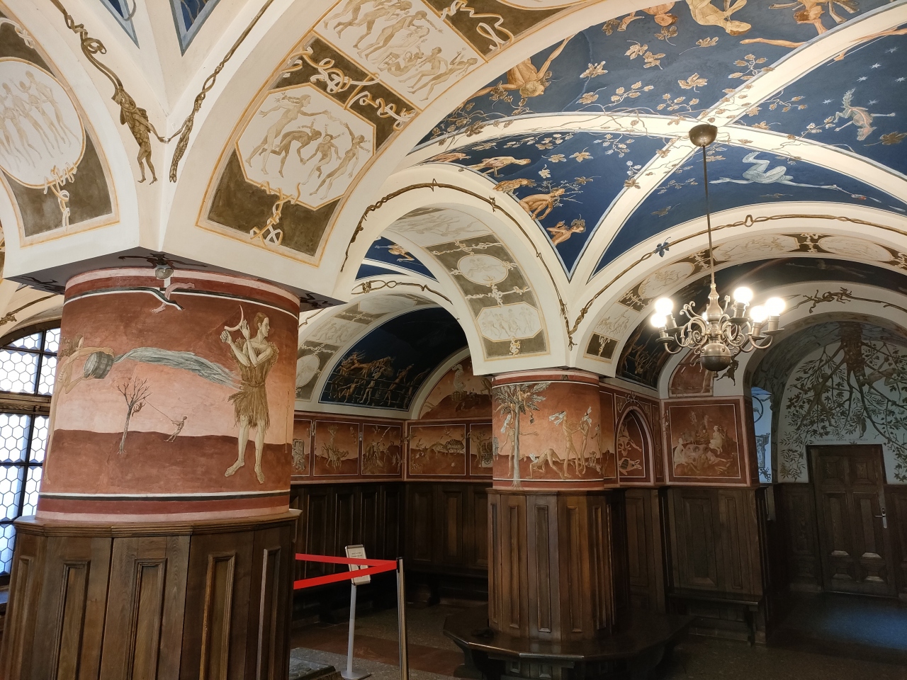 四季のフレスコ画と古書室がおもな見どころ。観光施設ではないため入口は分かりにくいです。