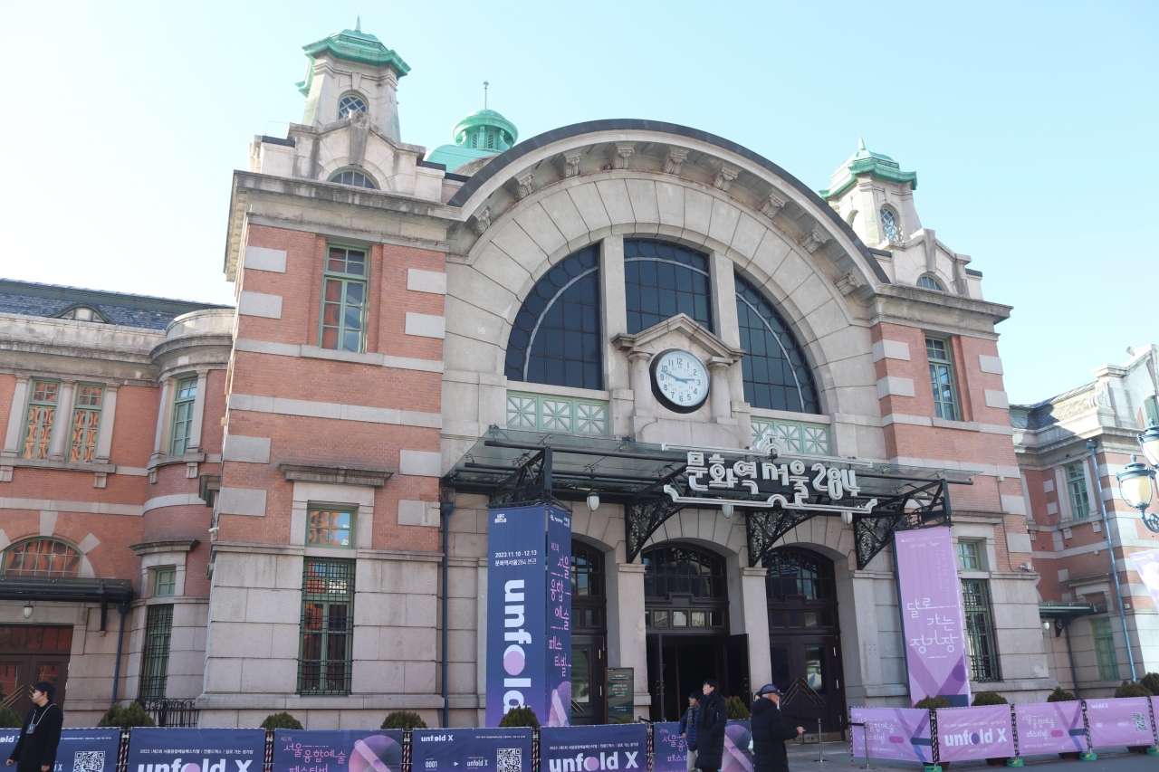 現在のソウル駅のすぐ横に保存されている旧駅舎です。文化財的な意味合いもありますが、館内は複数の部屋(スペース)があり、ギャラリーのような利用もされています。訪れた時は「ソウル融合芸術フェスティバル Unfold X 2023」が開催されていました。