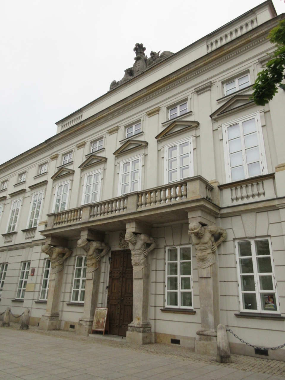 ワルシャワ滞在中に【クラクフ郊外通り】を訪れたのですが、その際に【ワルシャワ大学】の正面に向かって左手にあった立派な宮殿がこちらです。正面ファサードは筋骨隆々とした男性4人の像が、建物のバルコニーを背負ったような形状をしていてとても印象に残りました。大学の施設として利用されているようで、建物の中には入らず外観のみの見学でした。
