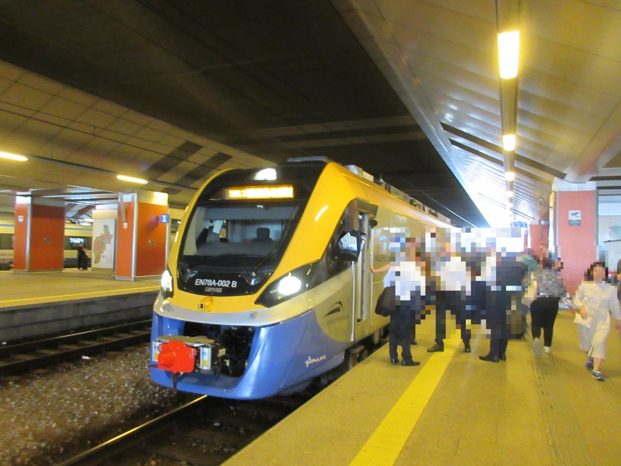 黄色のぴかぴかの車両で、ポーランドの経済成長のスピードを感じたように思いました。