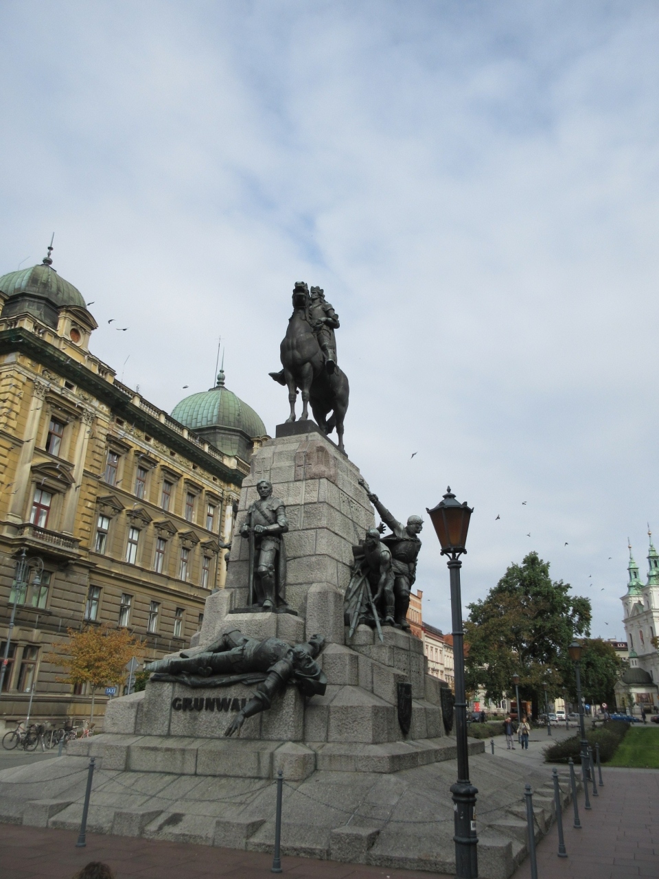 【グルンウォルドの記念碑】とのことで、調べてみるとポーランドの昔の英雄とのこと、この騎馬像の前には更に燃え盛る炎のようなオブジェもあり、広い面積がとられていました。彼へのポーランドの敬愛の念が伝わってくるようでした。
