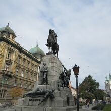 クラクフ中央駅の近くのホテルに滞在していたため、バルバカンやフロリアンスカ門の北側のエリアにある【マテイキ広場】を散策する機会がありました。その際、広場の中央に立派な騎馬像があり、近よってみました。