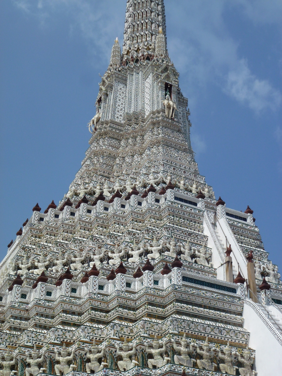 ワット アルンはアユタヤ時代に建立され、当時はワット・マコークという小さな寺院でした。1779年、トンブリ王朝のタークシン王がエメラルド仏を祀り、ワット・アルンと名付けて第一級王室寺院となったそうです。仏塔に近づいてみると細かい装飾が施されており、とても美しく、見ごたえのあるものでした。