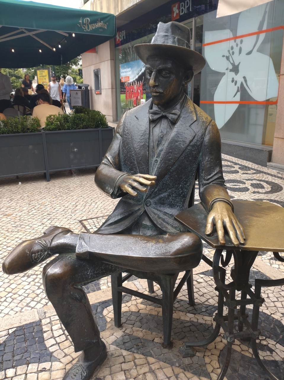 ガレット通りに展示してあるポルトガルの有名な文化人の銅像です。椅子に座っているのですが、足を組んでいて姿勢が悪い。両手は不自然に横に向けられていて、片手を上に上げたらイヤミのシェーじゃないかと思いました。