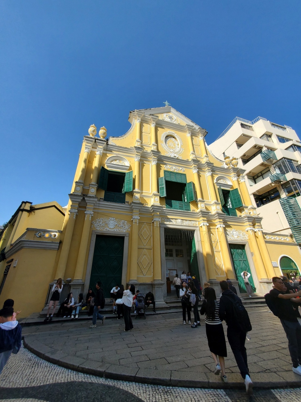 マカオの世界遺産のひとつ、聖ポール天主跡とセナド広場の間に有るイメージです。色が鮮やかな黄色で見ると分かると分かると思います。マカオの世界遺産はこの辺りに密集してるので歩きでの散策が可能で割とサクッと見て回れます。