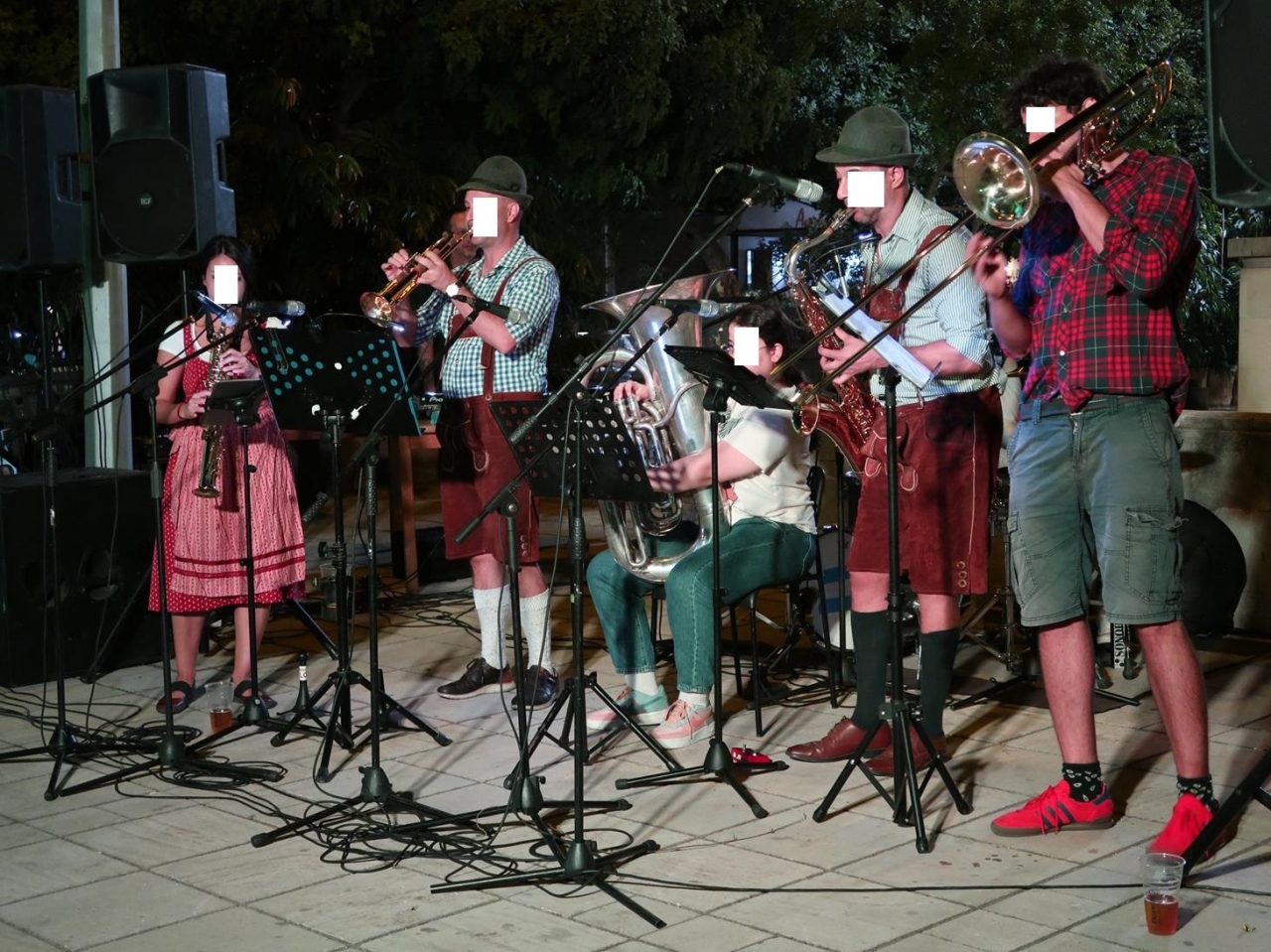 道理で、そのサッカークラブの名を冠した旗がいくつも立っていたり、バンドやコントのメンバーはドイツのバイエルン風の衣装で、音楽もドイツの民謡が混じってました。