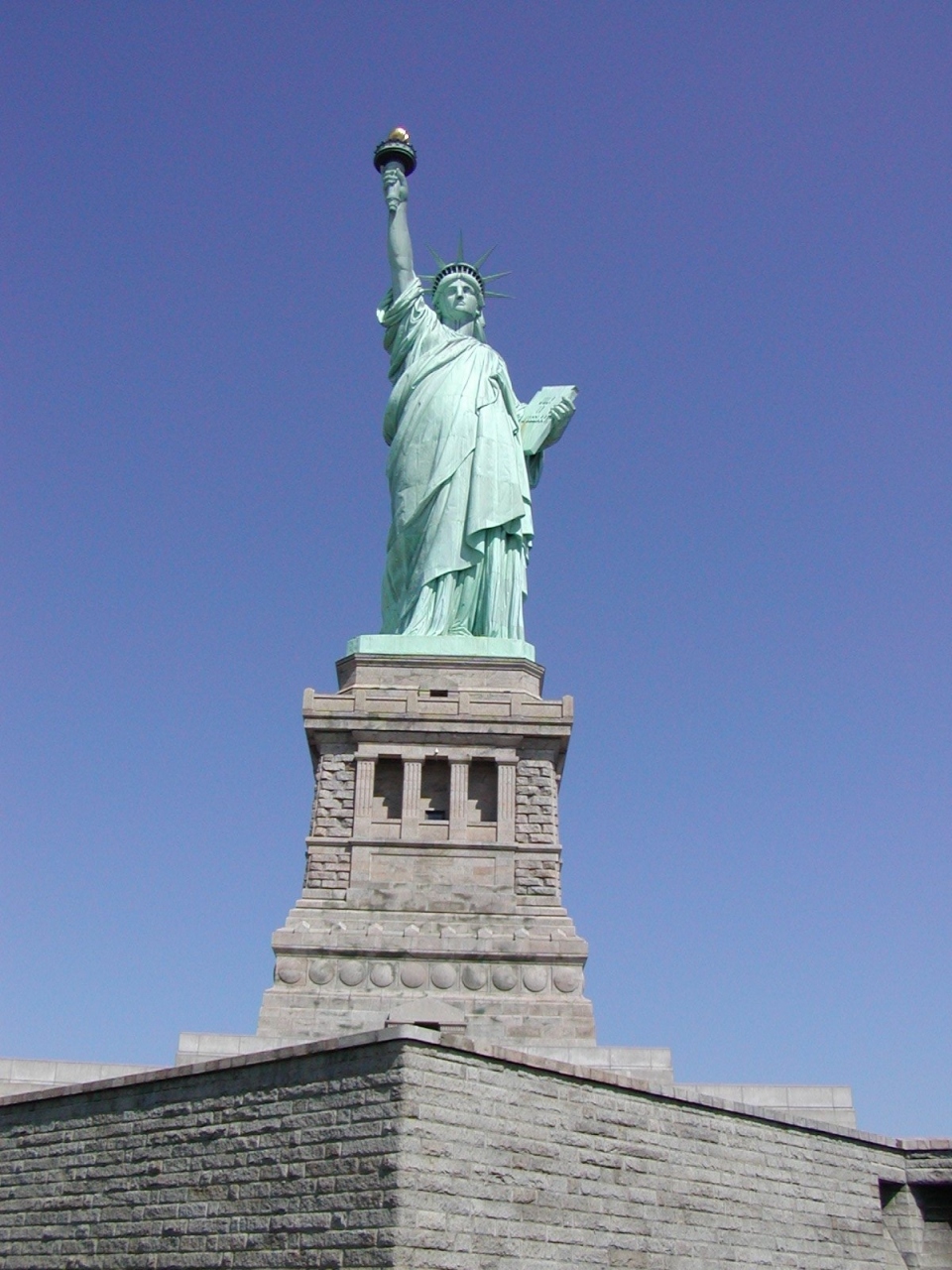 アメリカ独立100周年を記念してフランス国民の募金によって贈られた女神像でアメリカのシンボルになっています。バッテリーパークからリバティ島にフェリーに乗船して見物に行きました。間近で視る自由の女神像は思っていたより大きな像でした。