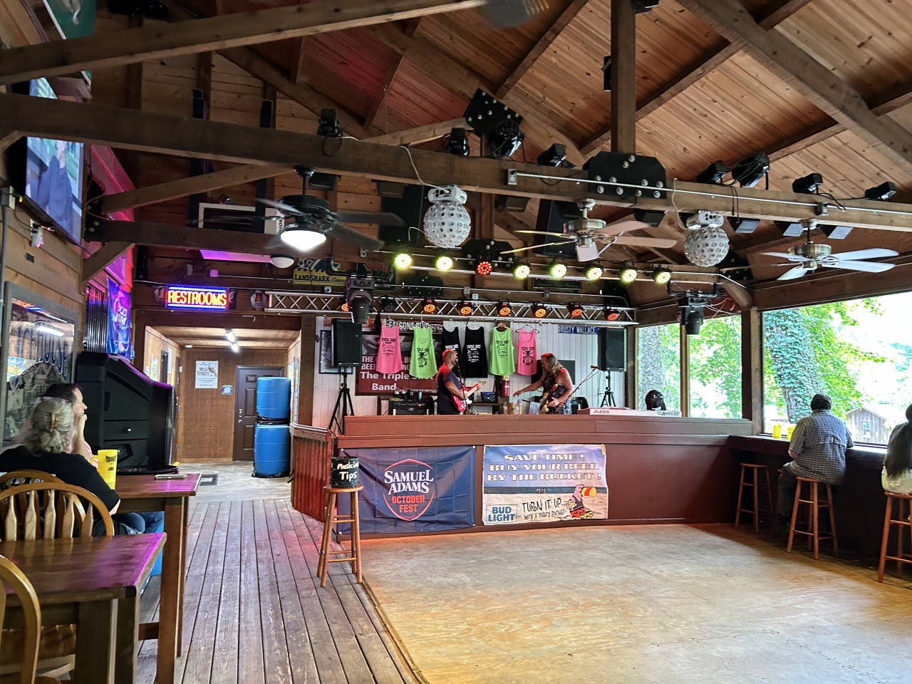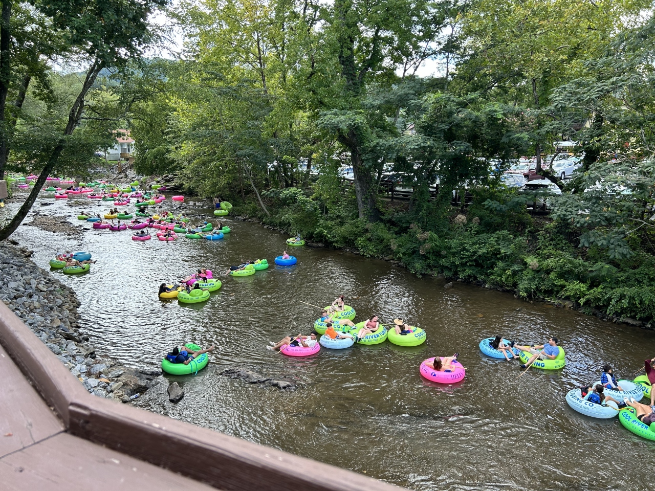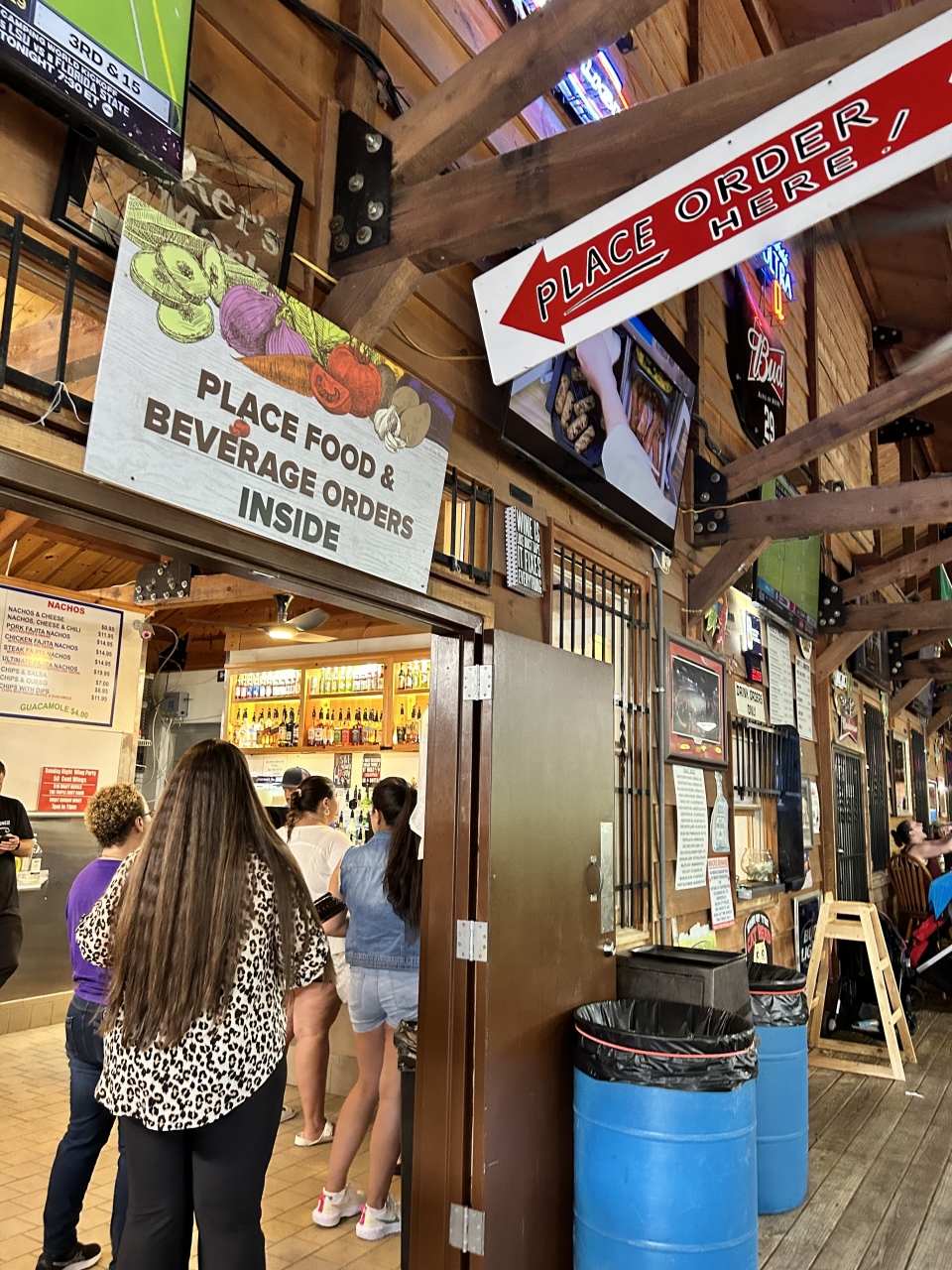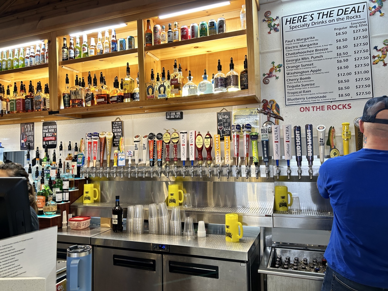 チャタフーチー川を望む人気のレストランです。気軽なファストフードっぽいレストランで、ライブ演奏で盛り上がり中でした。ビールとフードをゲットしにカウンターへ。ビールは「ヴァルシュタイナー(Warsteiner)」をチョイス。フードは、”BASKETS”というメニューカテゴリーの中の一番上にある「REUBEN」をチョイス。「REUBEN」とはルーベン・サンドのことで、ライ麦パンのトーストにコンビーフかパストラミビーフ、スイスチーズ、ザワークラウトを挟んだアメリカ生まれのサンドイッチ。ここではパストラミビーフかターキーが選べました。生演奏を聴きチュービングで流れてくる人々を眺めながら美味いビールが楽しめる、良い雰囲気のレストランです。