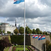 ルクセンブルク中央駅からトラムに乗って市街へ行く時に、橋のところから見えました。
