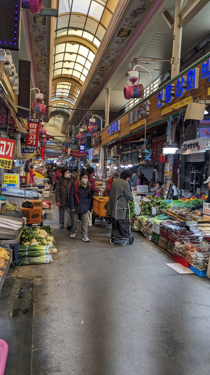 釜山の最大級市場で、西面から徒歩で行けるし雨天の観光にもオススメです。肉魚、野菜、キムチなど生鮮食品がメインで、キンパの人気店も多い市場です。卵キンパのセンセンキンパ、明太子キンパのためだけに行ってもいいくらいオススメです。