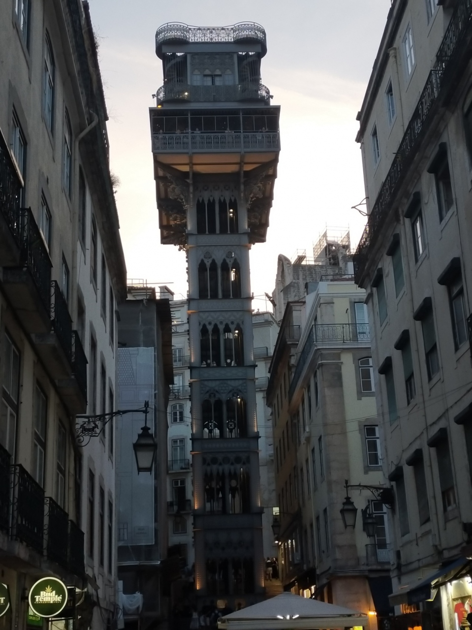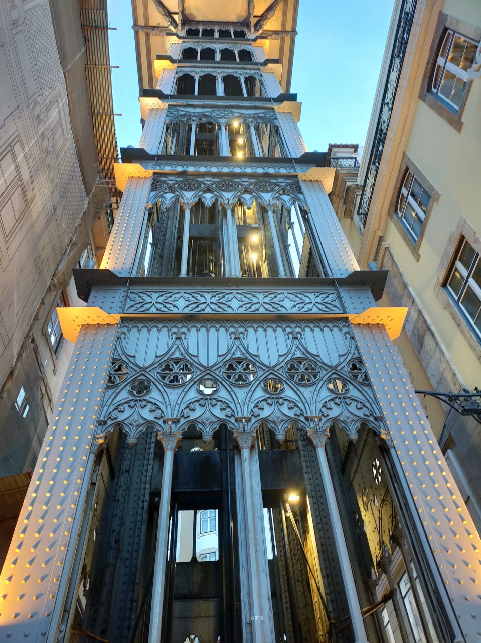 19世紀後半、低地と坂の上の土地(高低差45メートル)を行き来する為に作られた鉄製のエレベーター。近づくとライトアップされているのに、動いていない様子。ただ上を見ると人が居るのが見えるので、無印良品横の階段を上り、橋を渡るとエレベーターです。動いていれば乗ってみたかった。