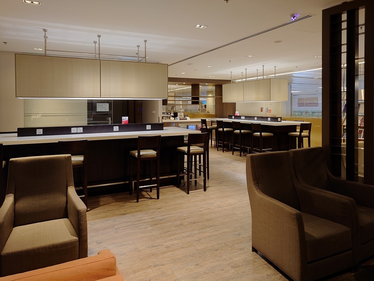 )が変わった印象です。インテリアなどは少々古めで、空港ビジネスラウンジとしては、食事の品数も多くはありません。いつも寒いくらいエアコンが効いています。評価としてはごく普通のラウンジです。