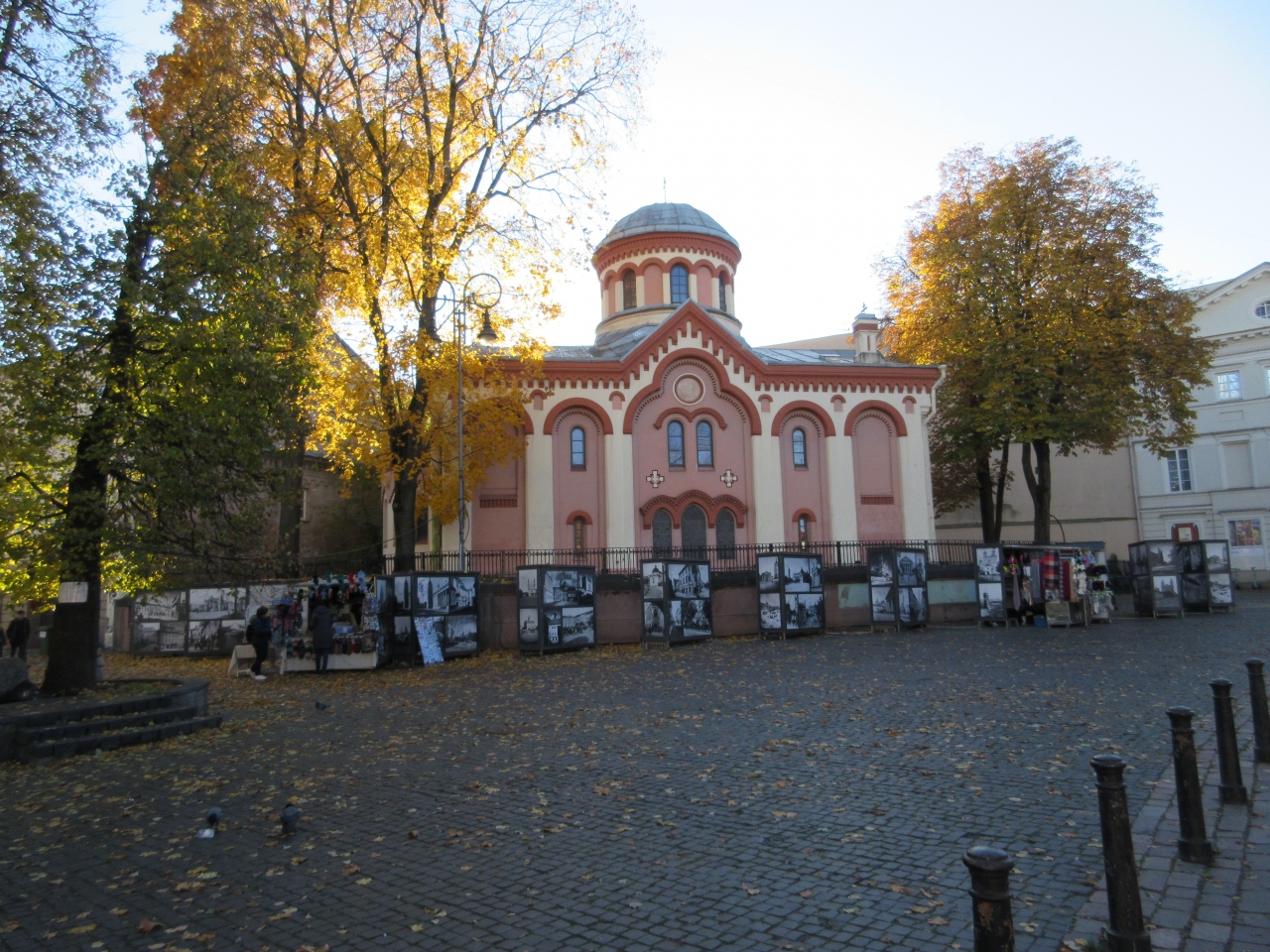 教会の周りにはビリニュスの写真のパネルがあり、お土産を売る屋台も出ていました。